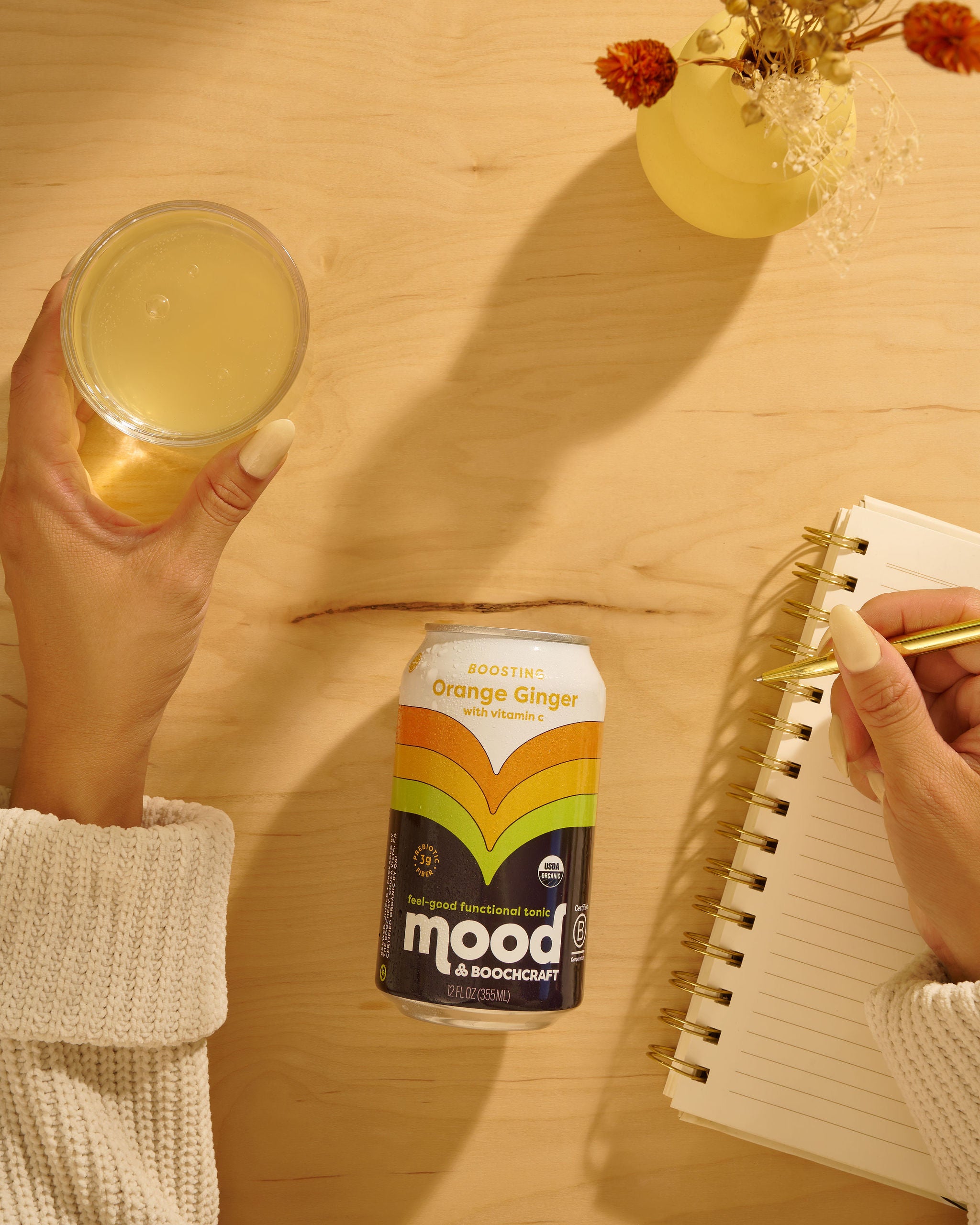 Every can of mood is fresh-pressed by yours truly. Real fruit, sourced form local farms and always organic. Its a difference you can taste.